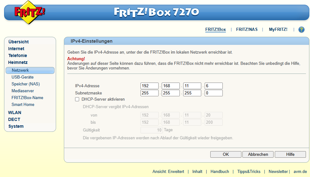 Mein Heimnetz ist 192.168.11.xx und .1 = 5690Pro