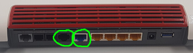 Links S0, rechts WAN an der 7590