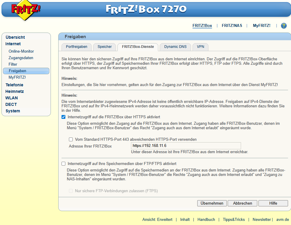 Ja, das habe ich auch so eingestellt, also in der 5690pro habe ich die FB7270v2 (ich habe doch keine 7390) auf Feste-IP 192.168.11.6 gestellt.