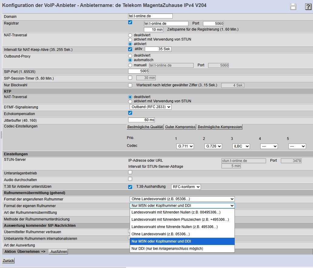ich habe bei mir nur schnell die Ortsvorwahl und den Benutzernamen herausgelöscht. Selbstverständlich ist dort ein Benutzername und Passwort zur Authentifizierung ect. eingetragen. Bei mir funktioniert es ohne Probleme mit der 5020 als Unteranlage an der 6000RX.