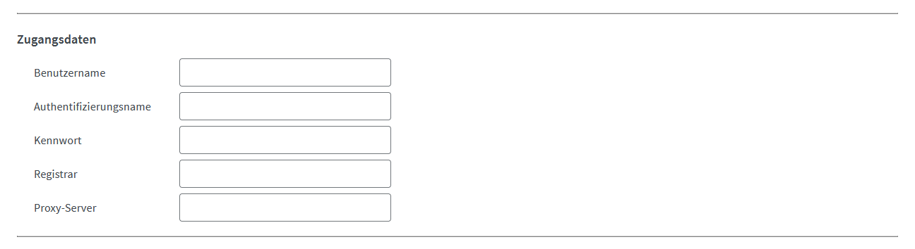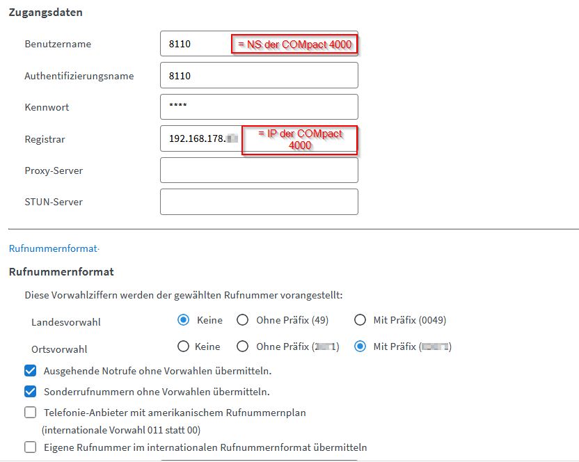 Benutzername: NSt.-Nummer Authentifizierungsname: Die Bezeichnung, die Du in der Anlage für diese NSt. eingetragen hast Kennwort: Das vergebene Kennwort aus der Anlage Registrar: Hier gehört die IP-Adresse Deiner Telefonanlage rein Proxy-Server: Kannst Du leer lassen, es sei denn Du hast den Proxy in der Telefonanlage eingeschaltet (dann hier auch die IP-Adresse der Anlage)