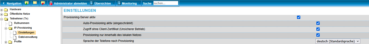 Um dies zu ändern muß sich jemand die Provisionsdatei des Telefons (.XML) in der Anlage ansehen und diesen Punkt ändern. Die andere, kürzere Möglichkeit ist es das Provisioning erst einmal auszuschalten. Bei meiner 6000er findet sich dies unter Teilnehmer/IP-Provisioning/Einstellungen.